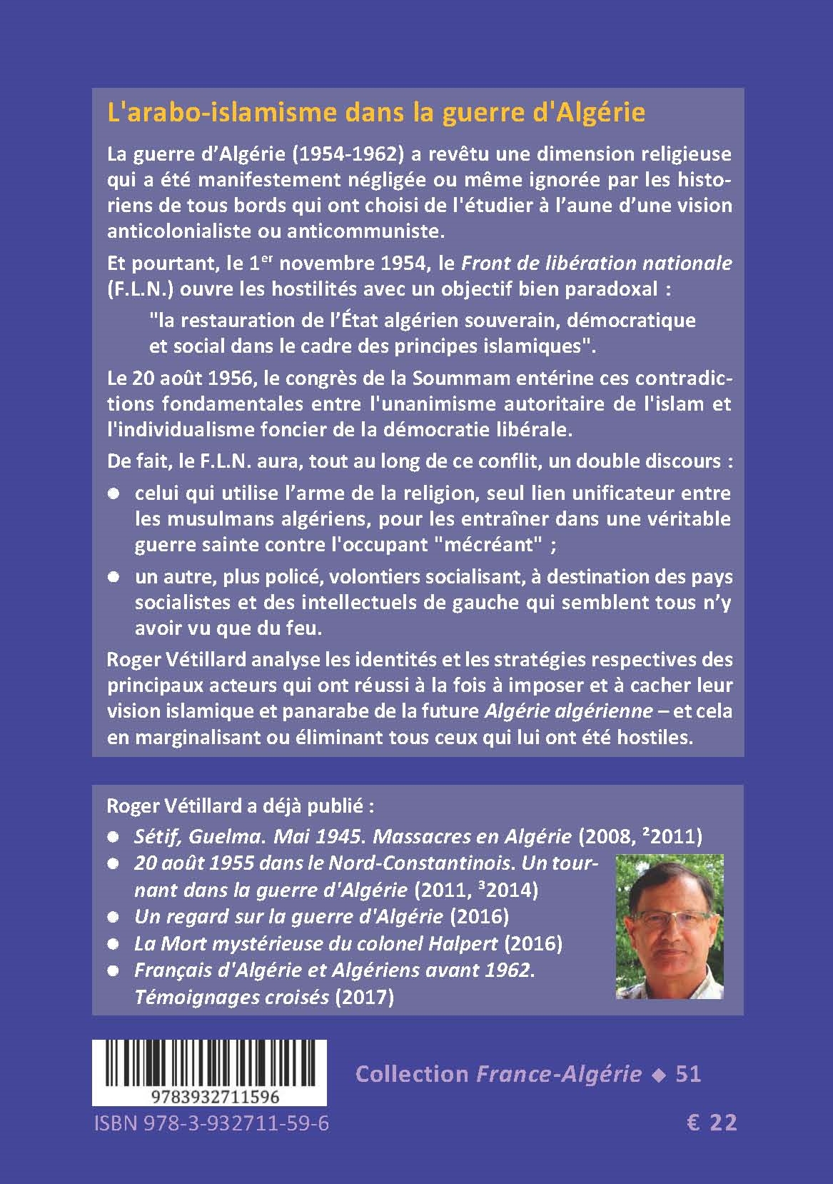 Roger Vétillard analysiert die Identitäten und jeweiligen Strategien der wichtigsten Akteure, denen es gelang, ihre islamische und panarabische Vision des zukünftigen algerischen Staates sowohl durchzusetzen als auch zu verbergen – und zwar durch die Marginalisierung oder Eliminierung aller, die ihnen feindlich gegenüberstanden.